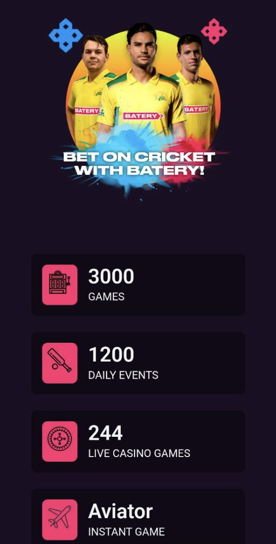 BateryBet has been a buzzing hub for casino and sports betting fans in India since 2008. It’s got easy-peasy navigation, top-notch games, and solid security with a Curacao license. Whether you love spinning reels, live dealer games, or betting on cricket, it’s all here. In our BateryBet review, we found that the Batery Bet casino welcomes you with a neat bonus to kick things off. With a smooth user interface and trusted payment options, the BateryBet app makes gambling fun and hassle-free. It is licensed and legit, giving players a safe space to enjoy their gaming. Dive into the world of Batery Bet casino and see why it’s catching everyone’s eye!